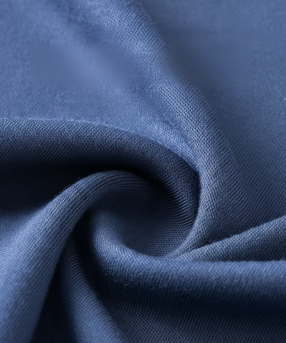 Diferente do algodão, o Modal Aura™ retém a pigmentação nas camadas profundas, impedindo o desbotamento.