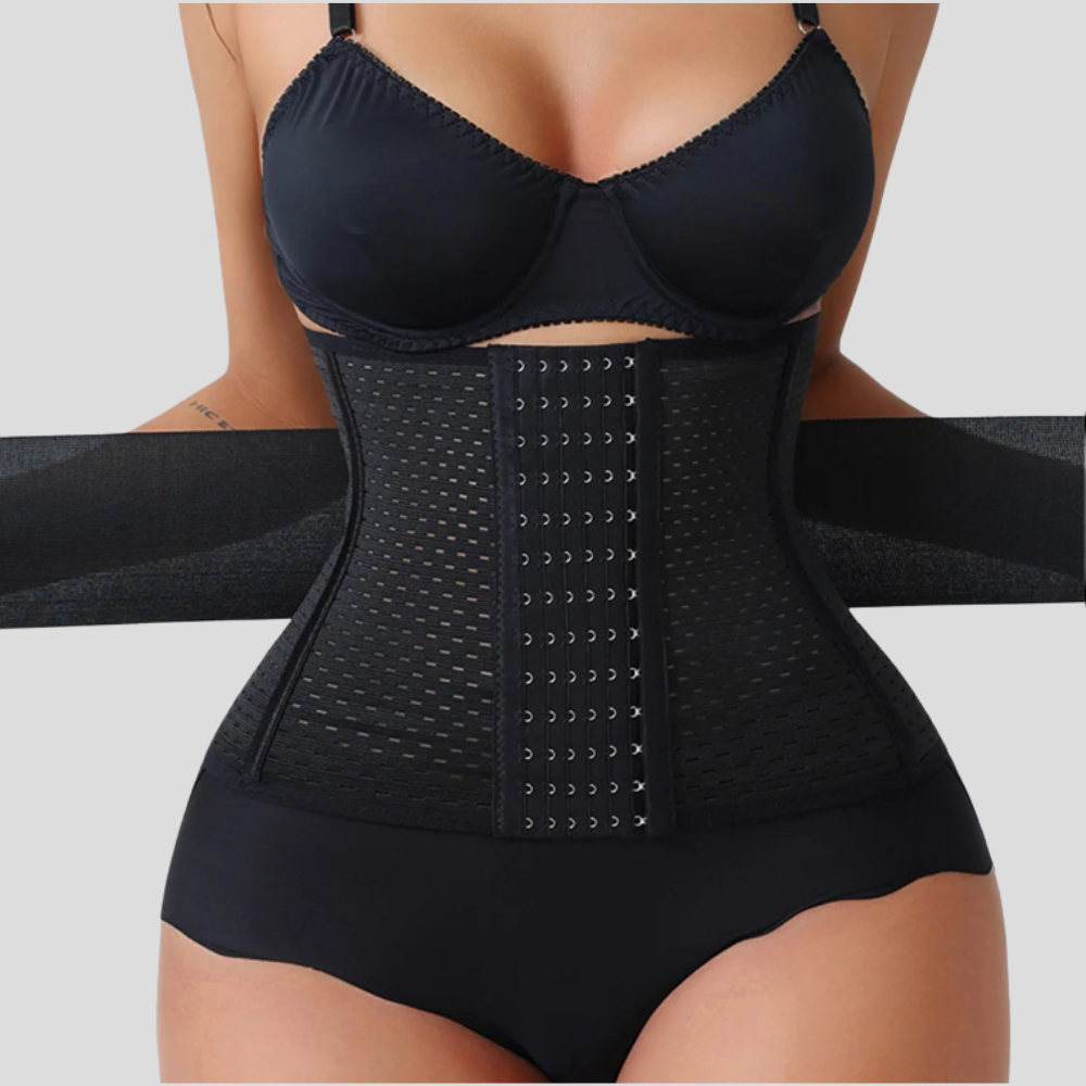Cintas de neoprene barato causam suor excessivo, irritam a pele e sufocam em poucas horas. Você desiste antes do almoço e abandona no fundo da gaveta — junto com a autoestima.